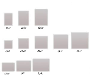 Τα μεγέθη των βιβλίων τετράγωνα: ”  15×15 , 25×25 , 20×20, 30×30 , 35×70  ” Διατίθενται επίσης οι αντίστοιχες εκδόσεις οριζόντια & κάθετα : ” 15χ20 , 20χ30 , 30χ40 ”